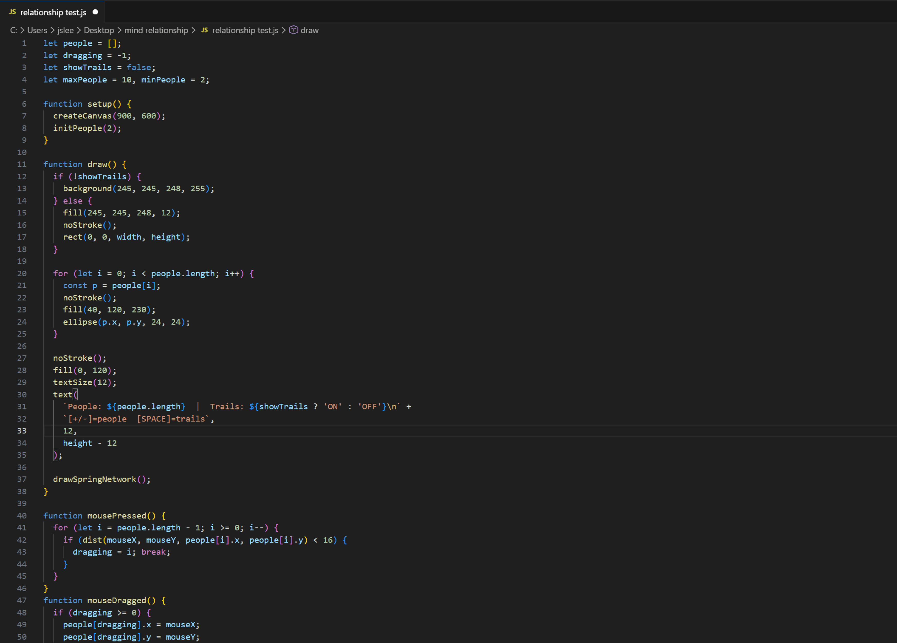 To move toward my project goal, I began with research that questioned whether feelings of disconnection are shared by others, and whether people imagine spaces that could actively respond to them. I conducted a research survey to gather perspectives on emotional isolation and the idea of communicative environments. Most responses reflected similar experiences of disconnection and expressed interest in environments that could interact with humans. Building on this insight, I visualized my concept through a JavaScript interface, testing how emotional distance might be represented through interaction. This experiment led me to focus on proximity as a key design parameter—using distance as a way to mediate communication between humans and their environment.