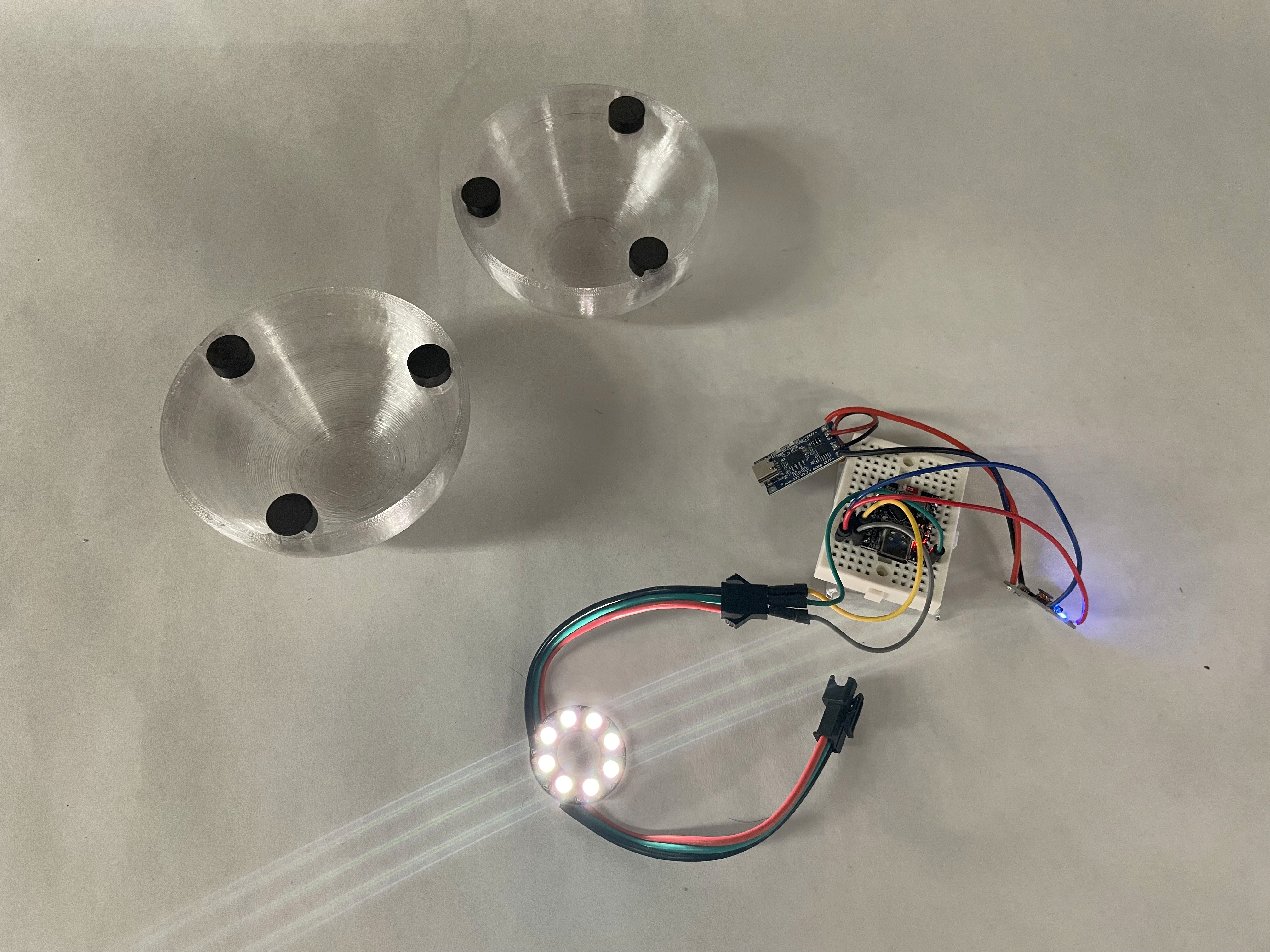 Using a ToF infrared distance sensor, I measured proximity as the primary input, allowing the lantern to respond dynamically as users approached. Multiple ESP microcontrollers(ESP-WROOM-32 and ESP-C3) were programmed and connected wirelessly via ESP-NOW to support modularity and compactness.