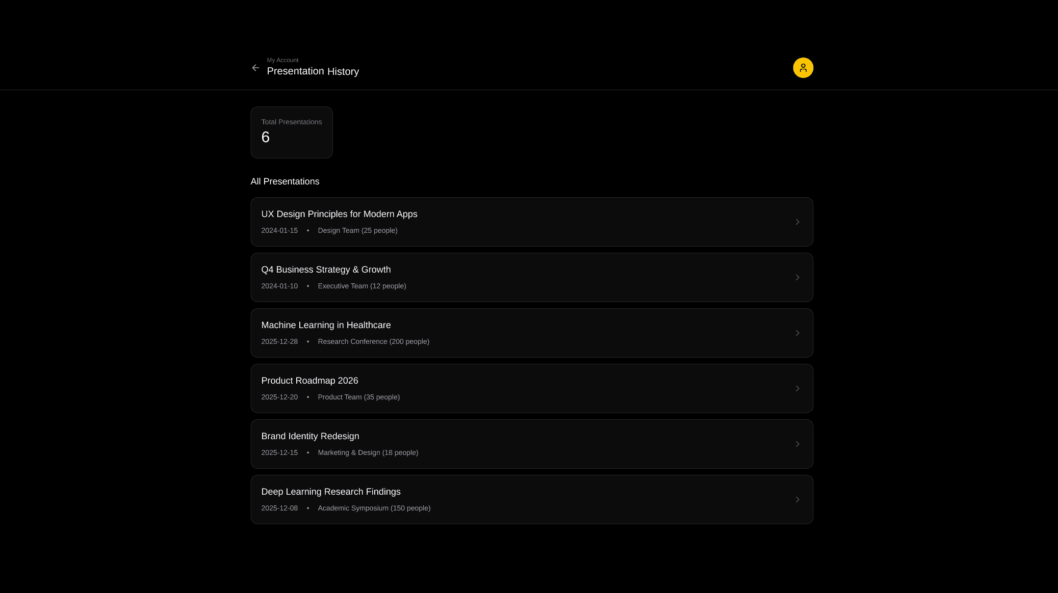 Each presentation session is saved to the presenter's account, allowing them to revisit, analyze, and reflect on past presentations at any time