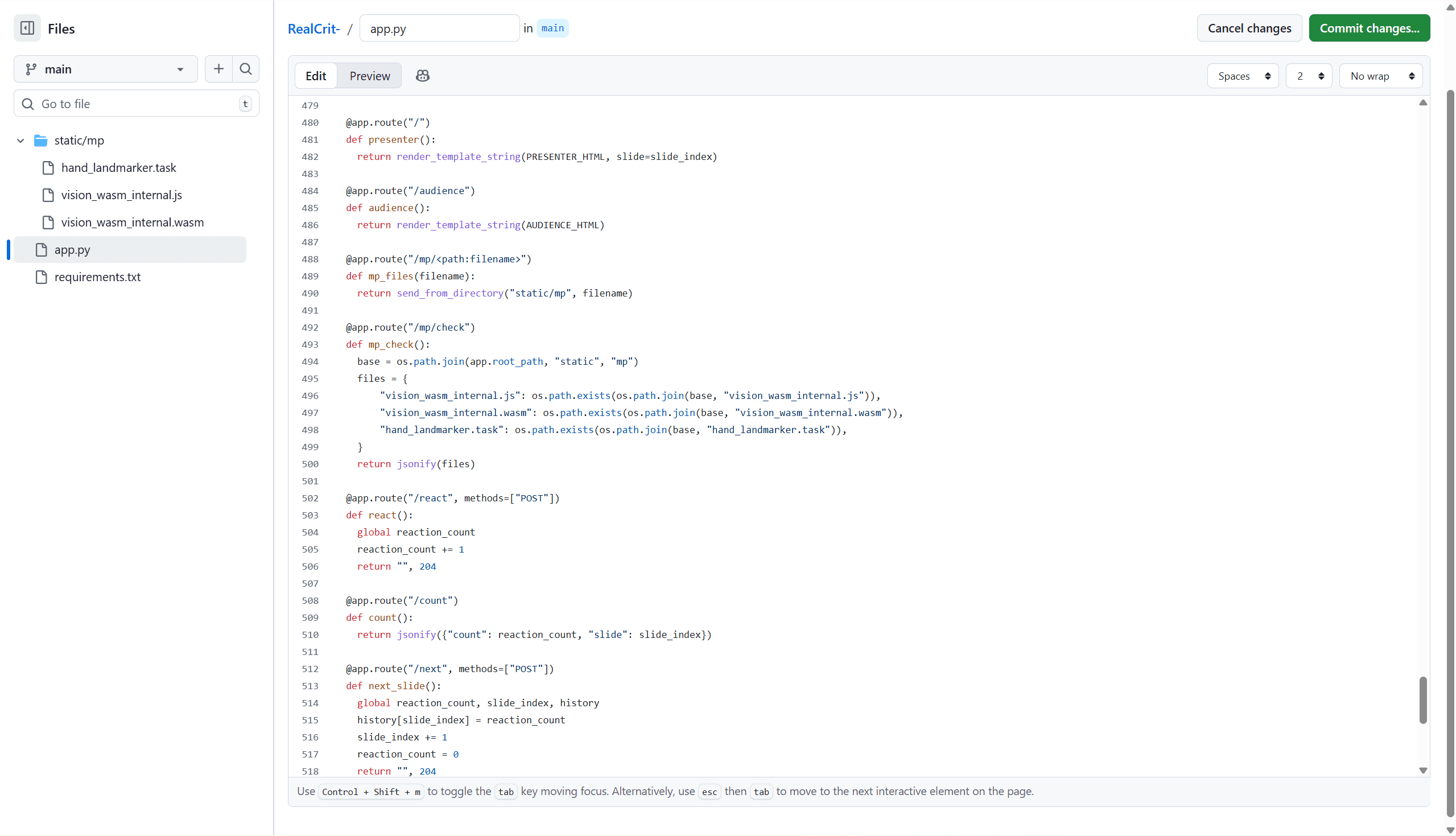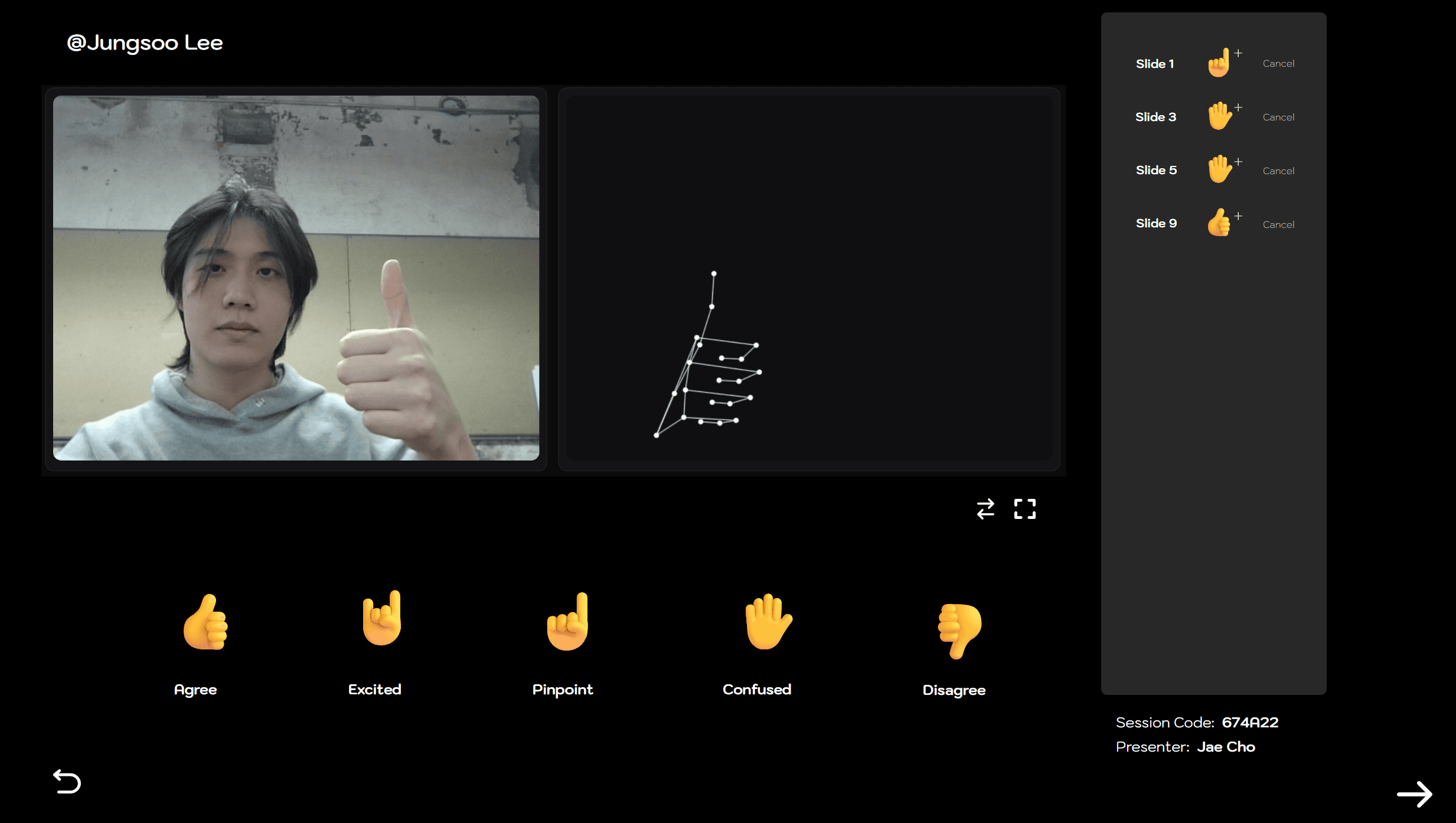 Their gestures are continuously captured using MediaPipe and stored on a server as part of the collective feedback stream
